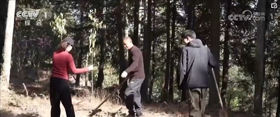 像往年一樣,植樹(shù)節(jié)這天,黃振芳的大兒子,66歲的黃傳融帶著女兒和外孫,拿著鐵鍬和香樟樹(shù)苗上山種樹(shù)。鏟土、挖穴、扶苗培土,黃傳融手把手地示范。