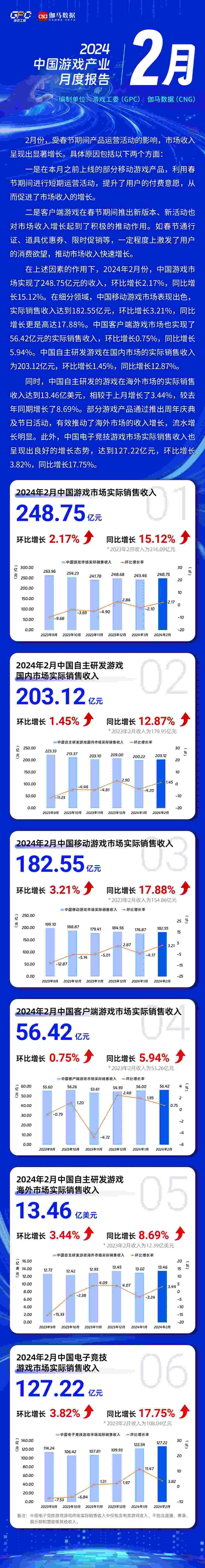 報(bào)告:2月份中國(guó)游戲市場(chǎng)收入248.75億元,同比增長(zhǎng)15.12%