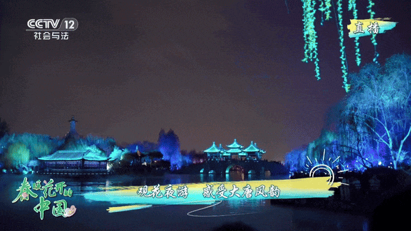 夜幕降臨,華燈初上,五亭橋的大型實景演出,炫目的光彩再現了迷人的詩情畫意,這也是國內首個以唐詩為主題的夜游文旅項目。