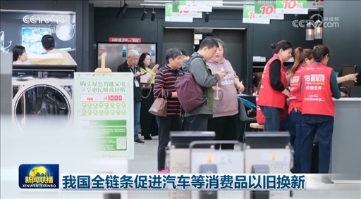 央視網(wǎng)消息(新聞聯(lián)播):記者從商務(wù)部了解到,近日,14部門聯(lián)合發(fā)布《推動(dòng)消費(fèi)品以舊換新行動(dòng)方案》,部署組織在全國范圍內(nèi)開展汽車、家電、家裝廚衛(wèi)等消費(fèi)品以舊換新。
