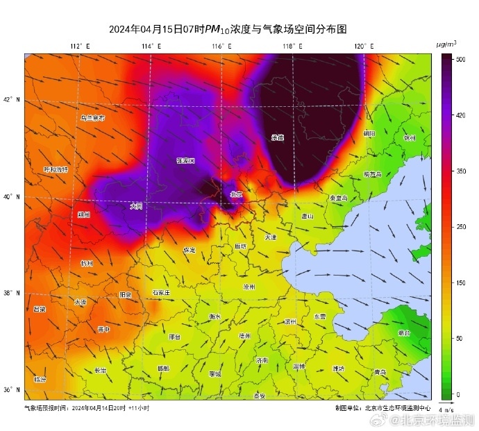 受上游來自蒙古國外來沙塵天氣影響,本市今早開始PM10濃度出現(xiàn)明顯抬升,目前西北部地區(qū)部分點位濃度已經達到400微克/立方米以上,屬嚴重污染程度。