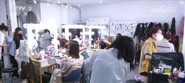晚上8時,在這家寫真店,仍有不少消費者在做妝造。負責人介紹,潑水節(jié)期間,他們的客流量比平時多了一倍。