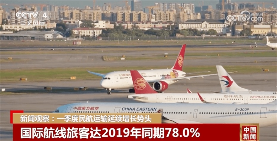 央視網(wǎng)消息:據(jù)中國民航局消息,2024年一季度,民航運輸生產(chǎn)開局良好,旅客運輸量和貨郵運輸量均創(chuàng)下歷年一季度最高值。全行業(yè)共完成運輸總周轉量同比增長45.6%,較2019年同期增長12.9%。