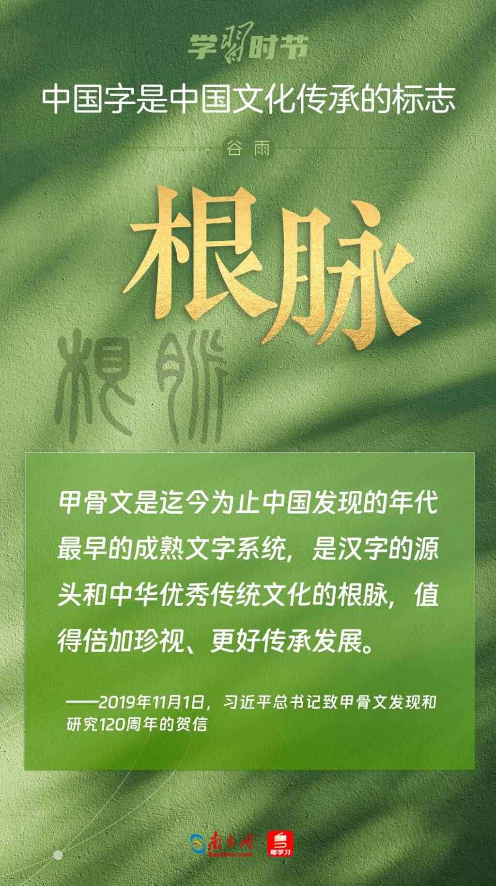 谷雨將至,讓我們一起學(xué)習(xí)習(xí)近平總書記談漢字、談文化傳承的經(jīng)典話語(yǔ),感悟和領(lǐng)略中華優(yōu)秀傳統(tǒng)文化的魅力。