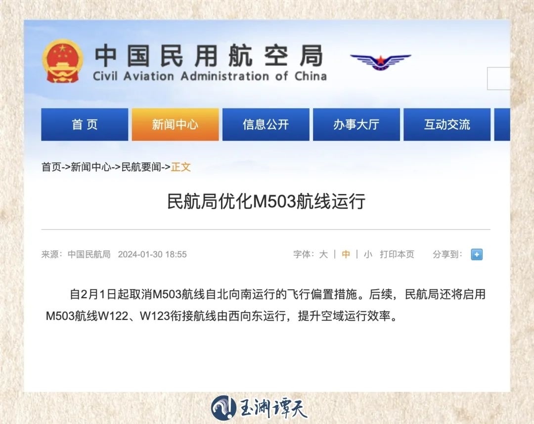 譚主注意到,此次消息中的M503航線,在1月30日民航局發(fā)布的消息中也曾出現: