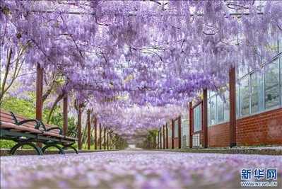 每年四月,迎來(lái)紫藤盛花期。近日,江蘇句容后白鎮(zhèn)張廟茶場(chǎng)的紫藤花進(jìn)入了盛花期,紫藤花一路搖曳盛放,宛如流動(dòng)的紫色瀑布傾瀉而下,吸引了不少市民游客前來(lái)打卡。
