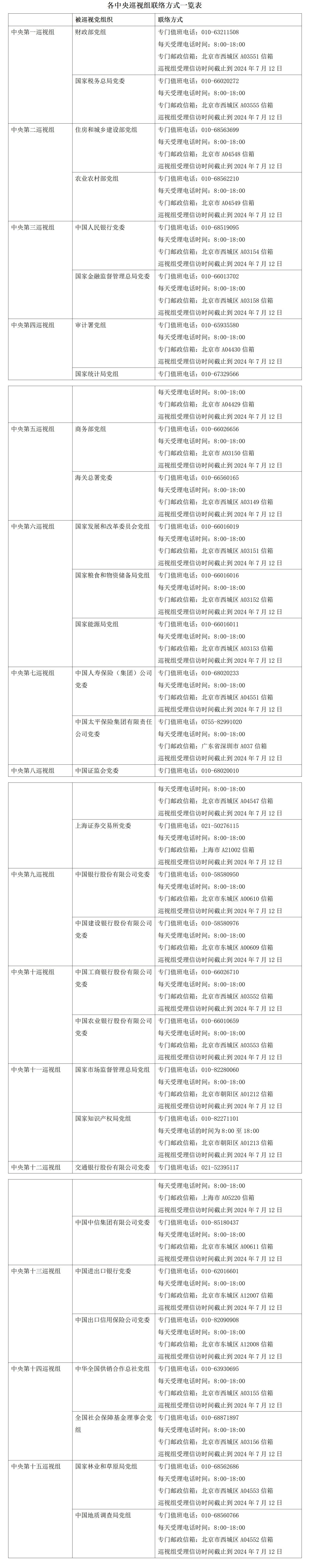 根據黨中央關于巡視工作統(tǒng)一部署,二十屆中央第三輪巡視的15個巡視組陸續(xù)開始進駐被巡視單位。目前,中央巡視組已進駐31家單位并公布了聯(lián)系方式。據了解,中央巡視組將在被巡視黨組織工作3個月左右。