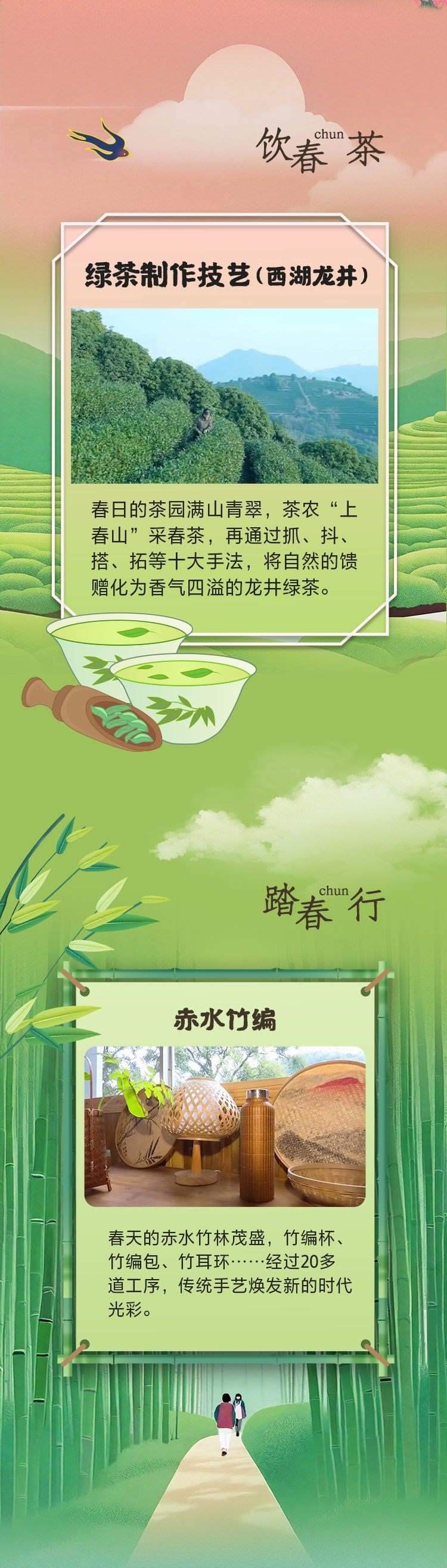 春花爛漫,踏春而行;茶香四溢,品味人生;竹林漫步,心隨風靜;感悟春光,詩情畫意;草長鶯飛,紙鳶翩躚……賞春花、上春山、享春光,讓我們抓住春天的尾巴,與非遺國潮來一場美麗的邂逅!