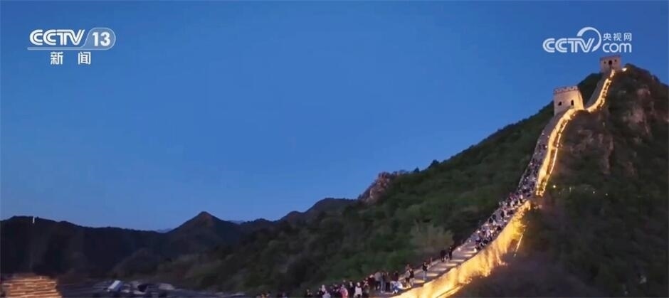 在密云,司馬臺(tái)長城也在夜間被“點(diǎn)亮”,如火龍般在山間蜿蜒。游客可以提燈夜游,感受古長城的磅礴氣勢(shì),也能泛舟河面,遠(yuǎn)望山巒朦朧,近觀燈火輝煌。景區(qū)還推出音樂、舞蹈、詩歌和繪畫相結(jié)合的演出活動(dòng),無人機(jī)在夜空中的飛行表演也給市民游客帶來了震撼的視聽享受。