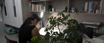 案前臺燈點亮她無悔的青春。