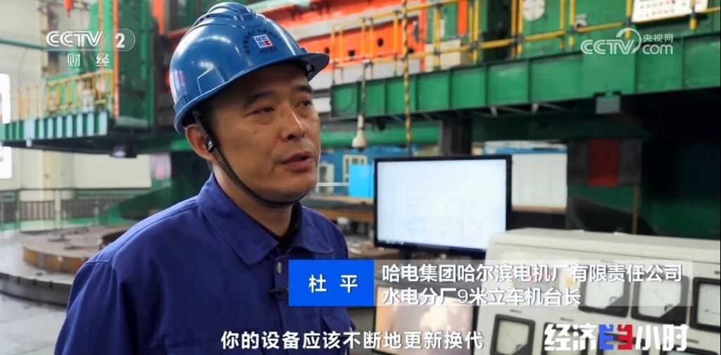 哈電集團(tuán)哈爾濱電機(jī)廠有限責(zé)任公司水電分廠9米立車機(jī)臺長杜平介紹,以前加工精度可能在毫米級,1毫米或者2毫米,現(xiàn)在加工精度可以精確到0.1毫米,一根頭發(fā)絲是0.07毫米,它就是比一根頭發(fā)絲稍微多了一點點。