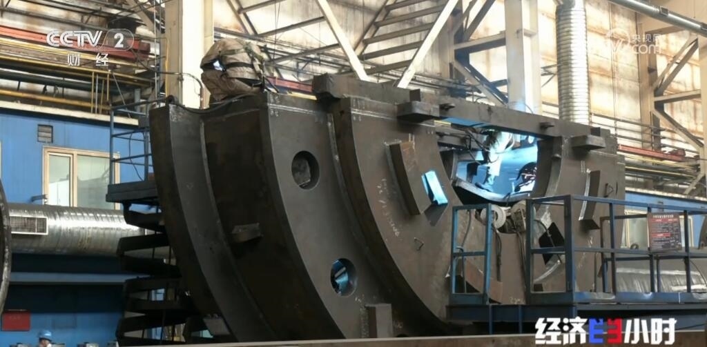 2019年,他們引進(jìn)了新設(shè)備,車床上正在加工的工件是近期準(zhǔn)備交付給客戶用在抽水蓄能項目上的關(guān)鍵部件。像這樣結(jié)構(gòu)復(fù)雜的零件,如果使用之前的老舊設(shè)備加工,至少需要更換兩三臺不同的加工設(shè)備,需要半個月以上才能完成加工。而這臺新型設(shè)備則可以不挪動工件就能完成所有加工工序,工期也可以縮短到7—10天。