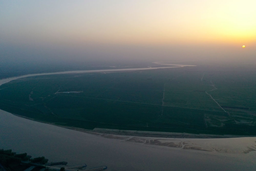 這是2024年4月17日在河南省蘭考縣黃河灣風景區(qū)拍攝的黃河(無人機照片)。新華社記者 郝源 攝