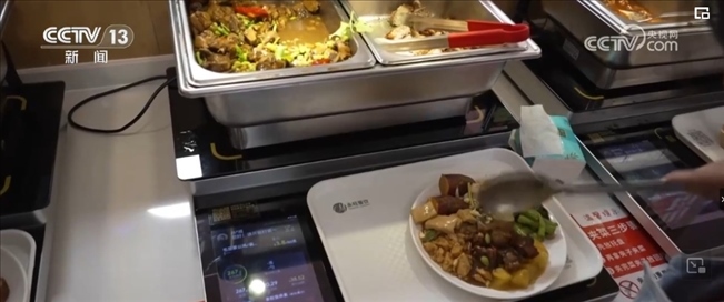 正值飯點,趙靚和同事來到單位附近的新安街道居家養(yǎng)老服務(wù)中心內(nèi)的社區(qū)智惠食堂就餐,兩個人選了5個菜,總共花費30多元。