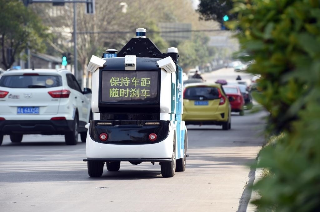 資料圖片:2022年3月15日,一輛無人配送車在合肥高新區(qū)進行公開道路測試。新華社記者 周牧 攝