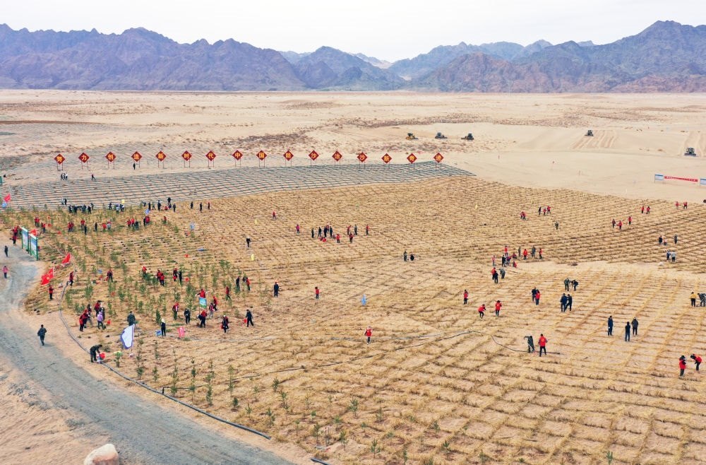 鄂爾多斯市副市長額登畢力格表示,鄂爾多斯市統(tǒng)籌生態(tài)保護(hù)和新能源開發(fā),集中連片打造庫布其北緣鎖邊林帶、庫布其腹地風(fēng)沙路徑阻隔帶,毛烏素上風(fēng)口阻隔帶、下風(fēng)口阻沙帶,庫布其沙漠“光伏長城”和毛烏素沙地風(fēng)電光伏“一廊多點”等標(biāo)志性工程,全年計劃完成沙化土地治理500萬畝。