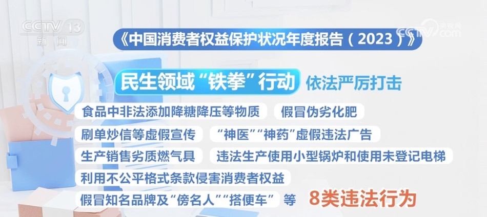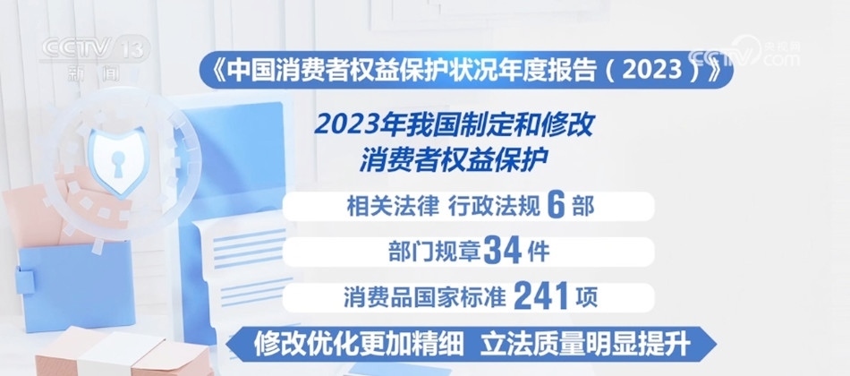 年度報告顯示,2023年我國制定和修改了消費者權(quán)益保護(hù)相關(guān)法律、行政法規(guī)6部、部門規(guī)章34件、消費品國家標(biāo)準(zhǔn)241項,修改優(yōu)化更加精細(xì),立法質(zhì)量明顯提升。
