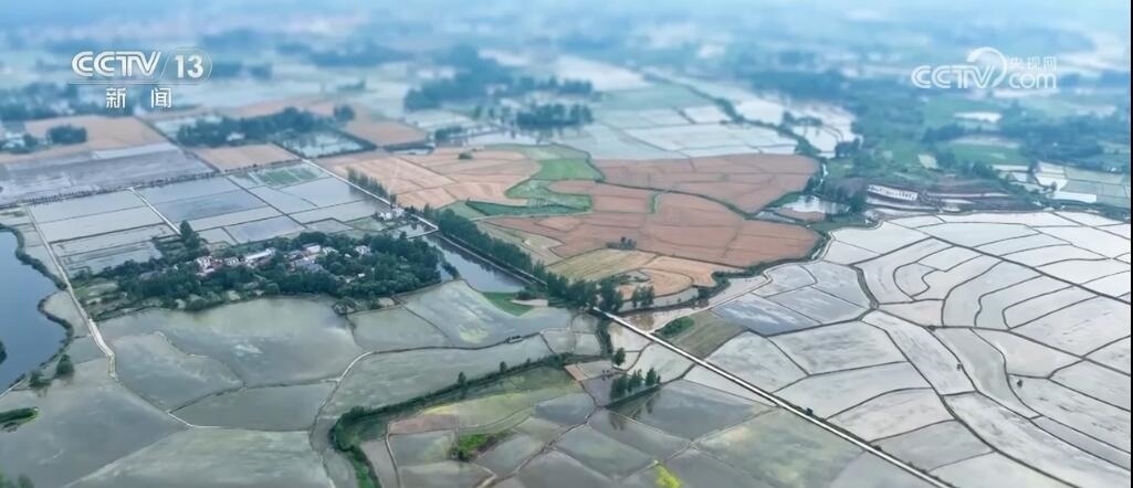 現(xiàn)在您看到的是河南信陽淮河以南的水稻插秧現(xiàn)場。插秧機(jī)在田間穿梭,一株株茁壯的秧苗被整齊有序地植入田間,一會(huì)兒工夫就插滿了整塊稻田。空中俯瞰,一臺臺插秧機(jī)在農(nóng)機(jī)手的操控下好似一把把畫刷,在稻田上輕輕暈染,繪就丹青。而同在信陽,淮河以北的麥田里,則是金色的麥浪翻滾起伏,收割機(jī)馳騁田間,飽滿的麥穗被卷入機(jī)艙,經(jīng)過收割、脫粒,顆粒歸倉。