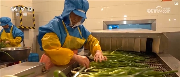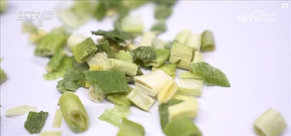 香蔥被運輸?shù)疆數(shù)氐募庸S后,經(jīng)過洗、理、切、分揀裝盤,然后就開始了高科技的“蛻變”之旅。工人先把香蔥放入冷庫冷凍數(shù)小時,然后立即抽真空“升華”干燥,經(jīng)過48小時左右的一系列工序后,一棵香蔥就變成了脫水蔬菜。留學回國創(chuàng)業(yè)的王一盛介紹,與過去使用的熱風干燥技術(shù)相比,這種新技術(shù)不僅讓垛田香蔥最大程度鎖鮮,價格也比過去增加了五六倍。