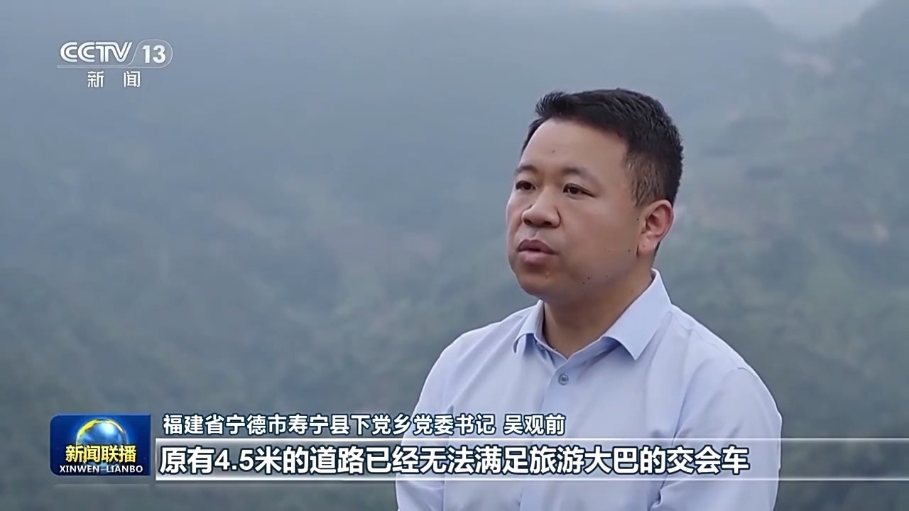 福建省寧德市壽寧縣下黨鄉(xiāng)黨委書(shū)記 吳觀前:原有4.5米的道路已經(jīng)無(wú)法滿足旅游大巴的交會(huì)車,農(nóng)村道路單改雙,交通更便捷了,四通八達(dá)的農(nóng)村公路是我們的致富路、振興路。