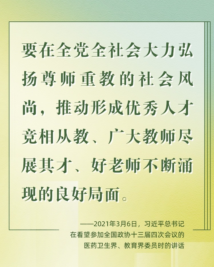 因為熱愛,所以一生堅持。老師是中華民族“夢之隊”的筑夢人,是新時代的“大先生”。從傳播知識、啟迪思想、無私奉獻,到“讓每個人都有實現(xiàn)夢想的機會”;從教書到育人,從個人到家國,從小我到大我,“培養(yǎng)德智體美勞全面發(fā)展的社會主義建設(shè)者和接班人”,老師,已然是喚起一代代學子追隨先輩、培養(yǎng)家國情懷、櫛風沐雨、砥礪前行的力量。
