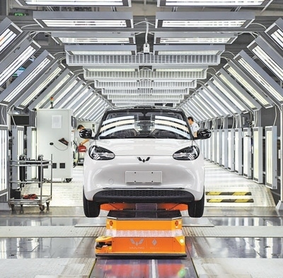 廣西壯族自治區(qū)柳州市上汽通用五菱精益智造工廠內(nèi),整車(chē)正等待下線。新華社記者 金皓原攝