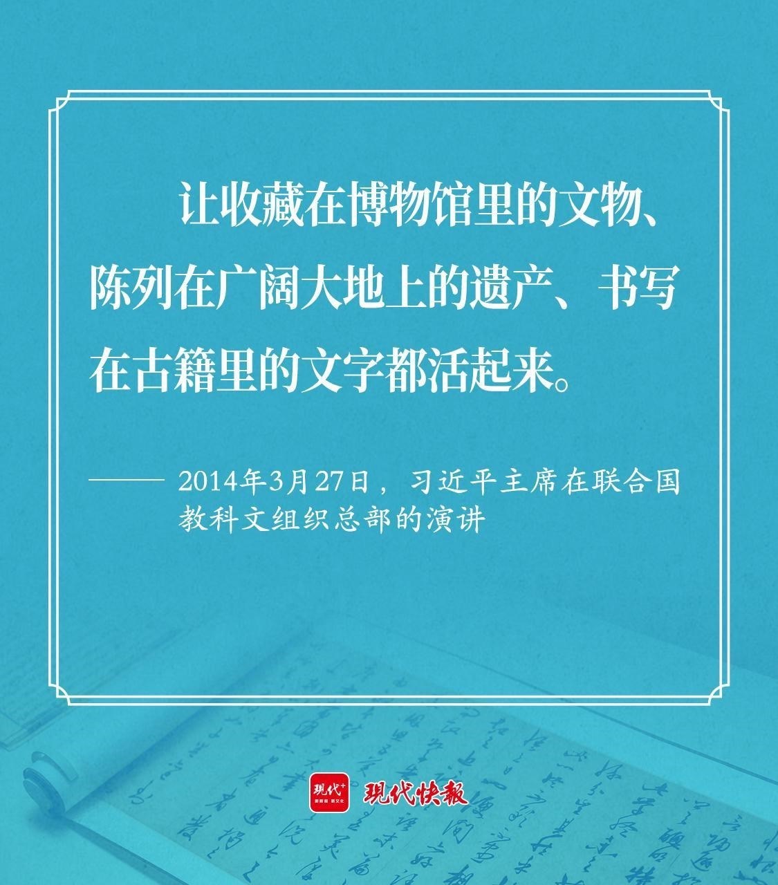 黨的十八大以來(lái),習(xí)近平總書(shū)記多次強(qiáng)調(diào),要系統(tǒng)梳理傳統(tǒng)文化資源,讓收藏在深宮里的文物、陳列在廣闊大地上的遺產(chǎn)、書(shū)寫(xiě)在古籍里的文字都活起來(lái)。