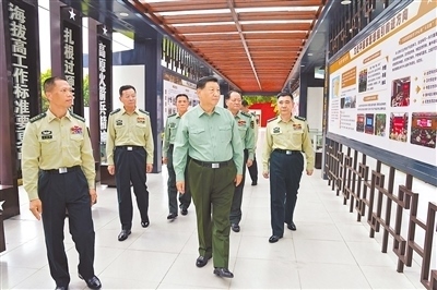 金秋十月,江淮大地山水秀麗、風(fēng)景如畫。上午11時許,習(xí)近平來到火箭軍某旅,首先察看了該旅軍史長廊。該旅是一支有著50多年光榮歷史的戰(zhàn)略導(dǎo)彈部隊。黨的十八大以來,該旅在習(xí)近平強軍思想指引下,堅定舉旗鑄魂,大抓實戰(zhàn)化訓(xùn)練,出色完成一系列重大任務(wù)。在反映部隊發(fā)展歷程、新時代全面建設(shè)的展板前,習(xí)近平詳細了解官兵學(xué)習(xí)黨的創(chuàng)新理論、加緊練兵備戰(zhàn)、弘揚優(yōu)良傳統(tǒng)等情況。