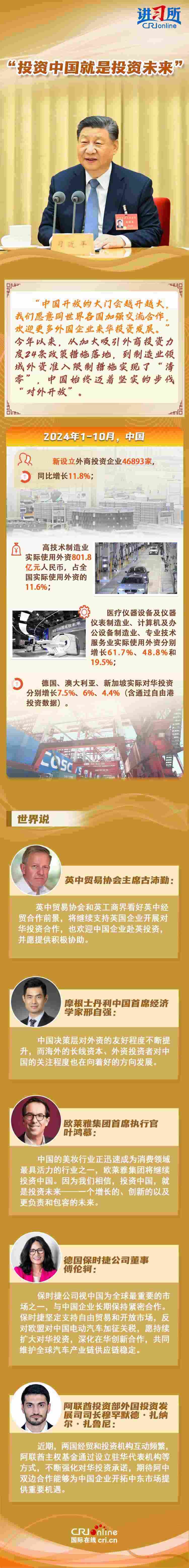 “中國是實干家、行動派。”今年以來,從習(xí)近平主席的歐洲之行到拉美之行,再到四天前在北京會見主要國際經(jīng)濟組織負(fù)責(zé)人,習(xí)近平一直強調(diào),中國的發(fā)展將給世界帶來巨大機遇。據(jù)聯(lián)合國貿(mào)易和發(fā)展會議不久前發(fā)布的《世界投資報告2024》中文版顯示,中國吸引外資的結(jié)構(gòu)不斷優(yōu)化、質(zhì)量不斷提高,多位政商界人士也認(rèn)為中國是一個非常有前景的市場,投資中國就是投資未來。