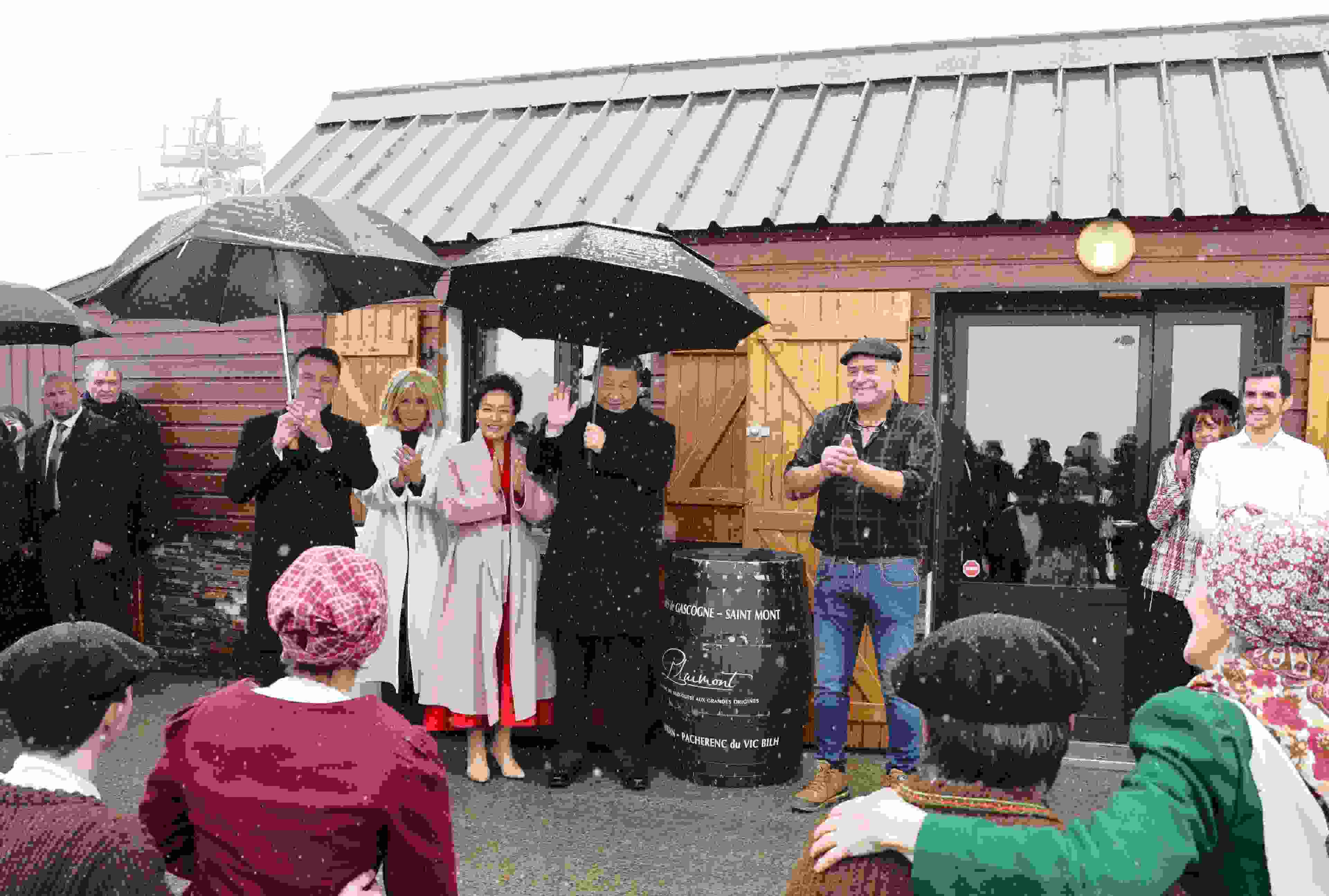 當(dāng)?shù)貢r間2024年5月7日,應(yīng)法國總統(tǒng)馬克龍?zhí)貏e邀請,國家主席習(xí)近平乘專機(jī)來到法國西南部上比利牛斯省訪問。在圖爾馬萊山口“牧羊人驛站”,習(xí)近平和夫人彭麗媛同馬克龍和夫人布麗吉特共同欣賞當(dāng)?shù)卮迕癖硌莸木哂袧庥裟戏L(fēng)情的牧羊人之舞。新華社記者 姚大偉 攝