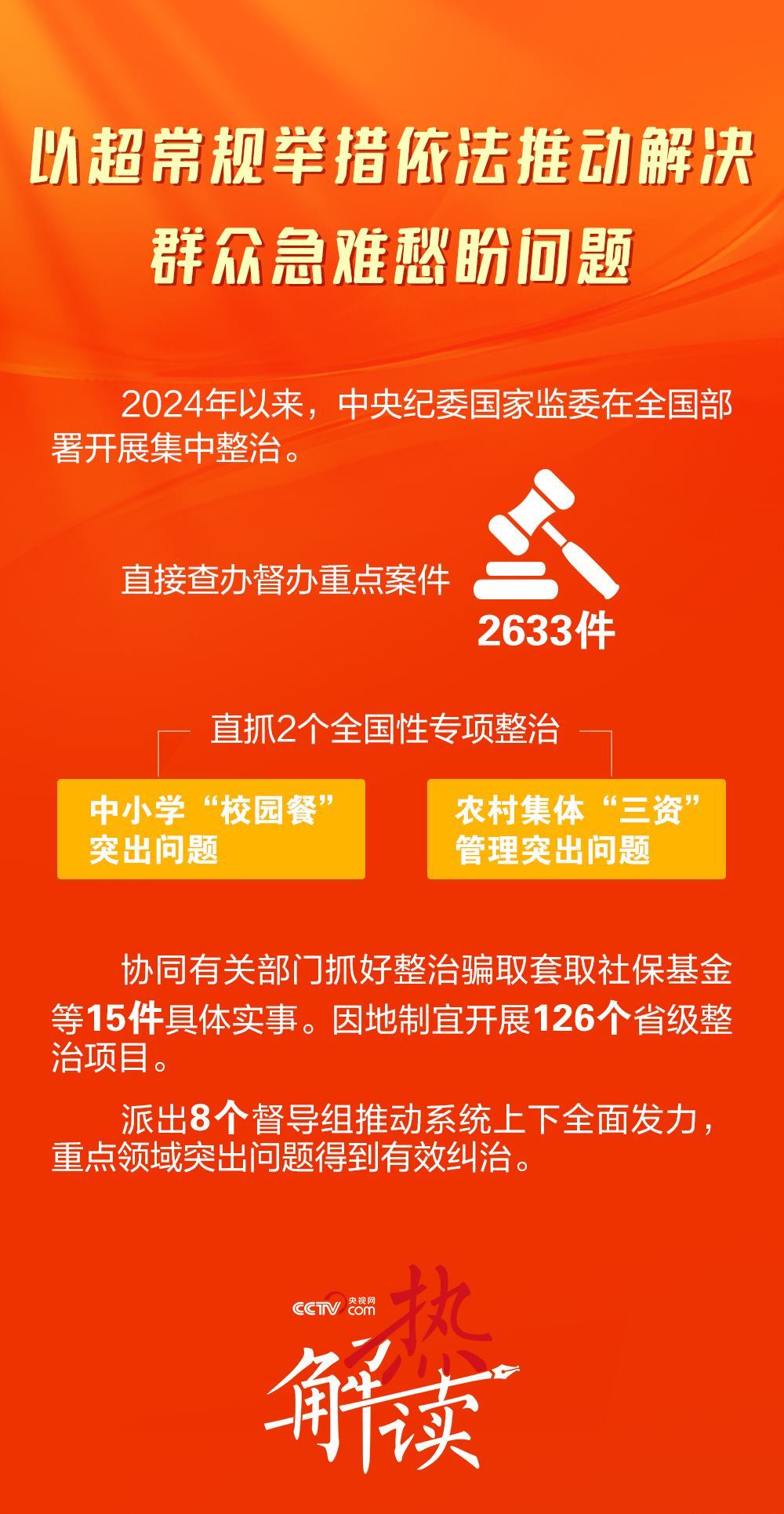2024年1月8日,在二十屆中央紀(jì)委三次全會(huì)上,習(xí)近平總書(shū)記明確要求懲治“蠅貪蟻腐”,讓群眾有更多獲得感。全會(huì)強(qiáng)調(diào)瞄準(zhǔn)教育、就業(yè)、醫(yī)療等民生領(lǐng)域的痛點(diǎn)難點(diǎn)開(kāi)展集中整治。此次召開(kāi)的二十屆中央紀(jì)委四次全會(huì),更加明確民生領(lǐng)域腐敗問(wèn)題整治方向——聚焦“縣以下這一關(guān)鍵環(huán)節(jié)、薄弱環(huán)節(jié)”,直達(dá)正風(fēng)肅紀(jì)反腐“最后一公里”。