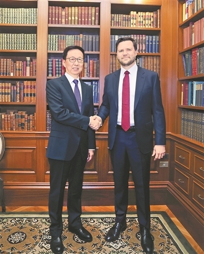 會(huì)見萬(wàn)斯時(shí),韓正首先轉(zhuǎn)達(dá)習(xí)近平主席對(duì)特朗普總統(tǒng)的問候,并祝賀萬(wàn)斯當(dāng)選。韓正表示,近日習(xí)近平主席同特朗普總統(tǒng)進(jìn)行了重要通話,就下階段中美關(guān)系發(fā)展達(dá)成許多重要共識(shí)。中方愿同美方一道,堅(jiān)持元首外交的戰(zhàn)略引領(lǐng),落實(shí)好習(xí)近平主席同特朗普總統(tǒng)達(dá)成的重要共識(shí),推動(dòng)中美關(guān)系穩(wěn)定、健康、可持續(xù)發(fā)展。