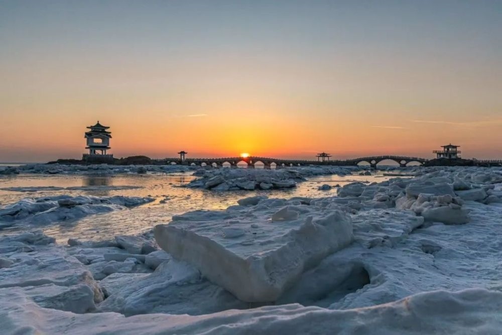 數(shù)九隆冬,位于葫蘆島興城市的三礁攬勝景區(qū)附近海水結(jié)冰。
