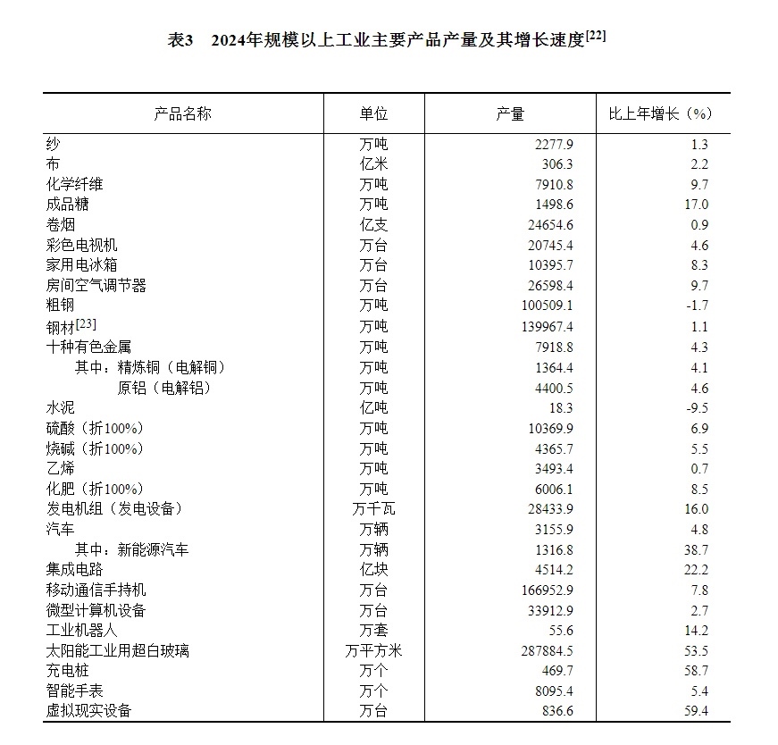 [11]由于統(tǒng)計(jì)調(diào)查制度規(guī)定的調(diào)查范圍變動(dòng)、統(tǒng)計(jì)執(zhí)法、剔除重復(fù)數(shù)據(jù)等因素,2024年規(guī)模以上工業(yè)相關(guān)指標(biāo)增速及變化按可比口徑計(jì)算。