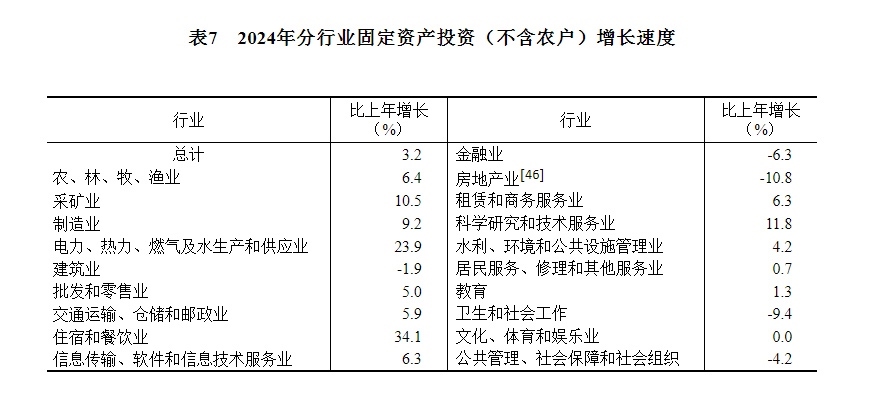 [41]由于投資統(tǒng)計(jì)制度方法改革、第五次全國經(jīng)濟(jì)普查數(shù)據(jù)修訂、統(tǒng)計(jì)執(zhí)法檢查等因素,2024年固定資產(chǎn)投資相關(guān)指標(biāo)增速按可比口徑計(jì)算。