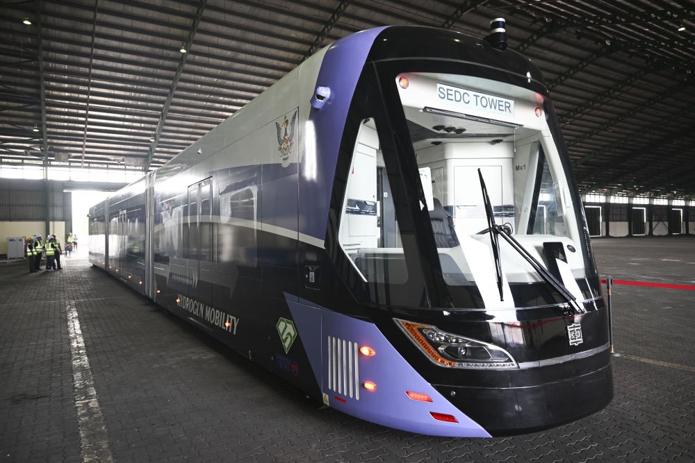2023年,由中車株洲電力機車研究所有限公司自主研發(fā)制造的氫能源智軌電車在馬來西亞沙撈越州古晉市開啟試跑。