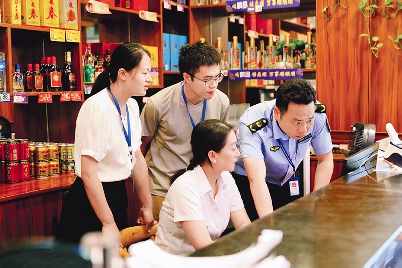 各地紀(jì)檢監(jiān)察機(jī)關(guān)聚焦違規(guī)吃喝隱形變異問(wèn)題,深入酒店、飯店、單位食堂等重點(diǎn)場(chǎng)所開(kāi)展專(zhuān)項(xiàng)監(jiān)督檢查,堅(jiān)決防止違規(guī)吃喝歪風(fēng)反彈回潮。圖為2025年4月18日,重慶市銅梁區(qū)紀(jì)委監(jiān)委和區(qū)市場(chǎng)監(jiān)管局工作人員在轄區(qū)某飯店了解情況。 中央紀(jì)委國(guó)家監(jiān)委網(wǎng)站供圖 馬冬曉/攝