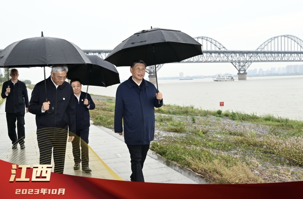 2023年10月10日下午,習(xí)近平總書記在江西九江市考察,冒雨在江邊察看,了解當(dāng)?shù)亻L江國家文化公園建設(shè)、長江岸線生態(tài)修復(fù)等情況。10月12日,總書記在進一步推動長江經(jīng)濟帶高質(zhì)量發(fā)展座談會上回顧長江經(jīng)濟帶發(fā)展歷程,感慨:“做就要做好,堅定做下去。篤行不怠,一以貫之,久久為功?!?/strong>
