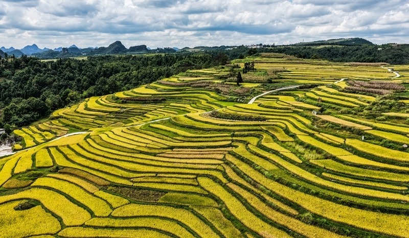 長順縣長寨街道擺塘梯田風(fēng)光(9月17日攝,無人機照片)。