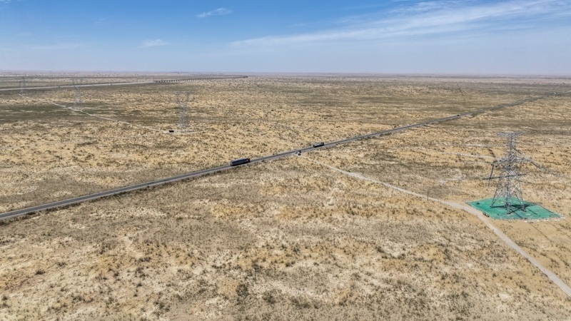 7月13日,在塔里木盆地南緣的新疆和田地區(qū)民豐縣,隨著牽引機(jī)將最后一段電線(xiàn)成功從183號(hào)鐵塔拽至188號(hào)鐵塔,標(biāo)志著歷時(shí)15年建設(shè)的環(huán)塔里木盆地750千伏輸變電工程全線(xiàn)貫通,形成了一條圍繞塔里木盆地的750千伏超高壓輸電環(huán)網(wǎng)。