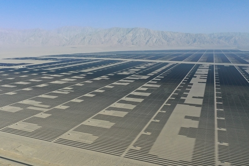 這是中國(guó)綠發(fā)新疆中綠電若羌400萬(wàn)千瓦光伏項(xiàng)目(6月26日攝,無(wú)人機(jī)照片)。