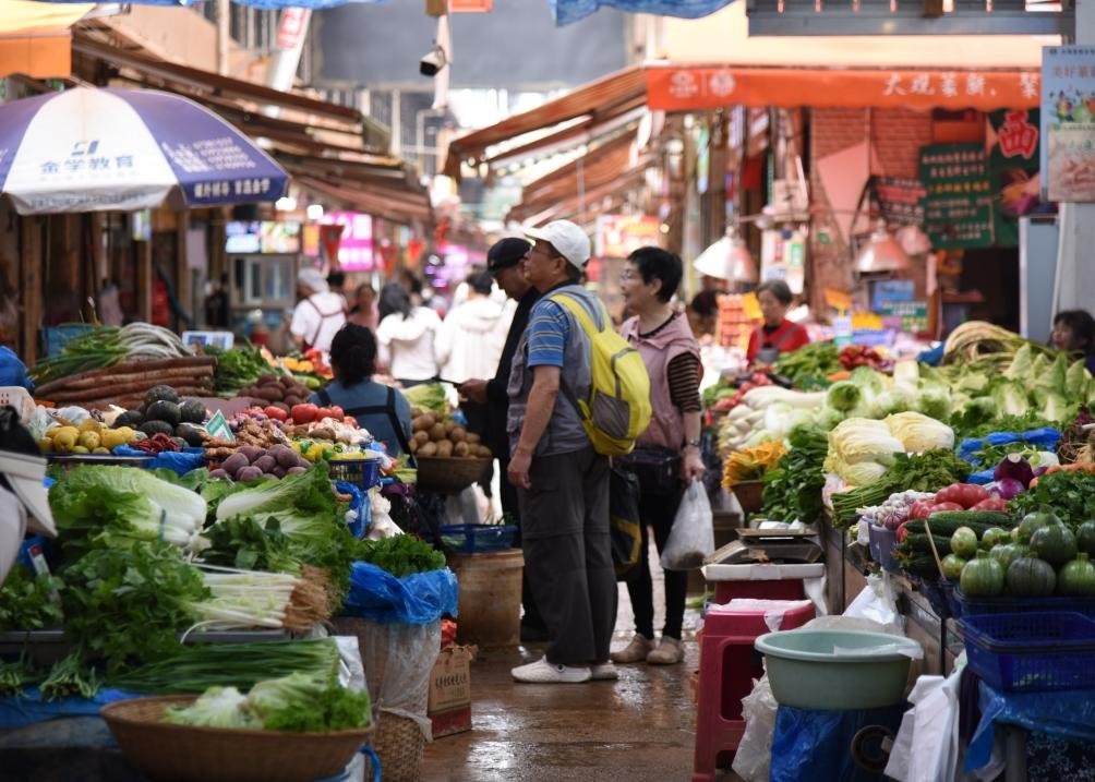 6月5日,游客在逛云南昆明大觀篆新農(nóng)貿(mào)市場。新華社記者王賢思 攝