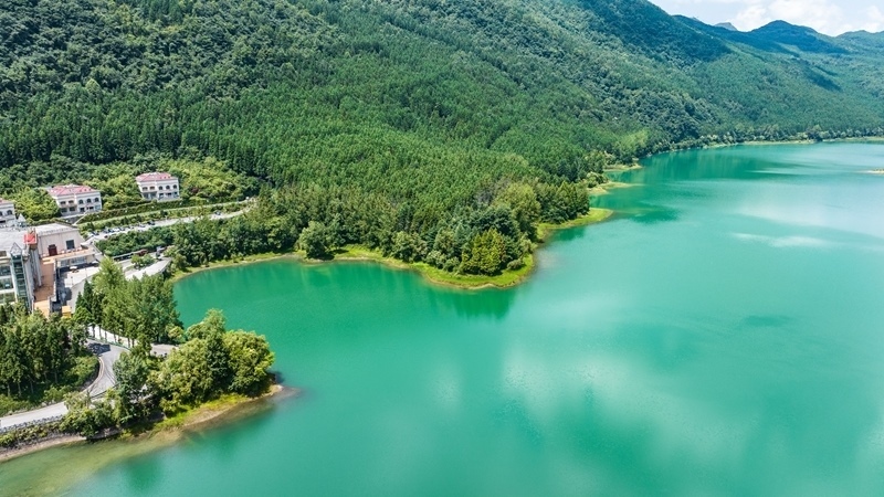 這是7月30日拍攝的六盤水市鐘山區(qū)瑤池公園風(fēng)光(無人機(jī)照片)。