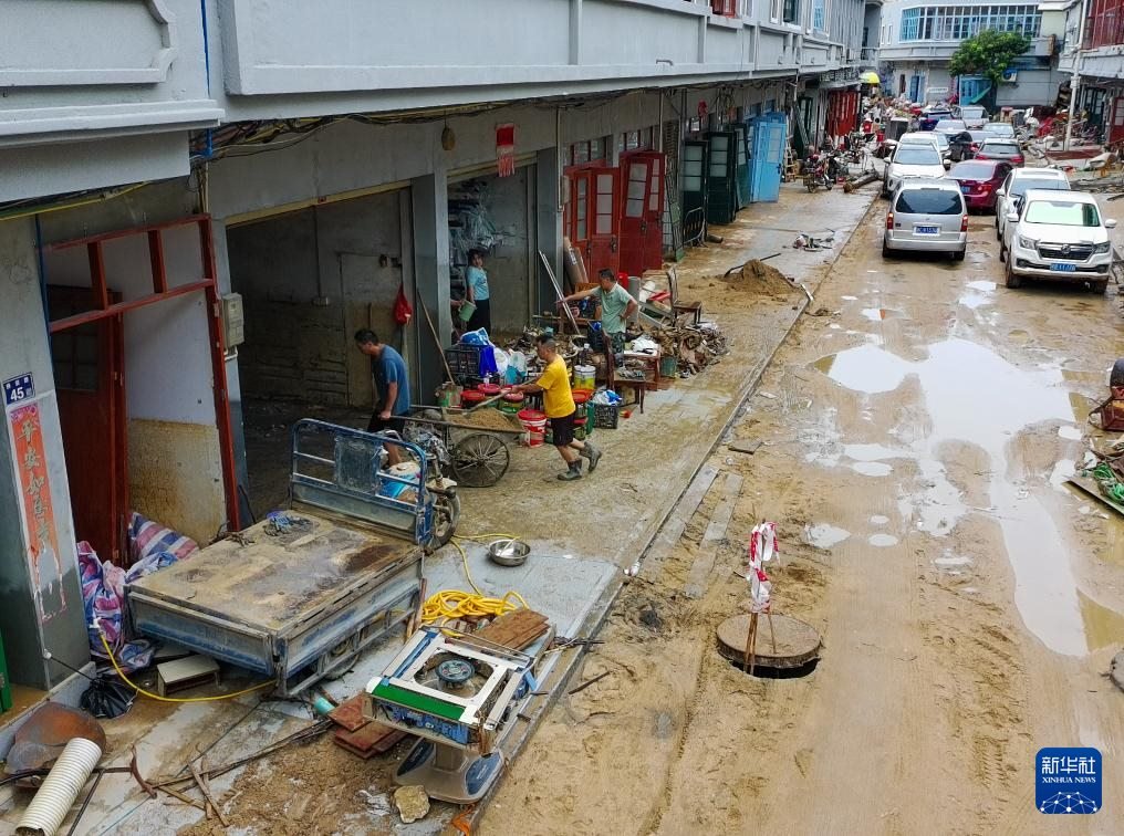 8月6日,村民在廣東清遠(yuǎn)佛岡縣石角鎮(zhèn)黃花村搬運(yùn)受損家具。