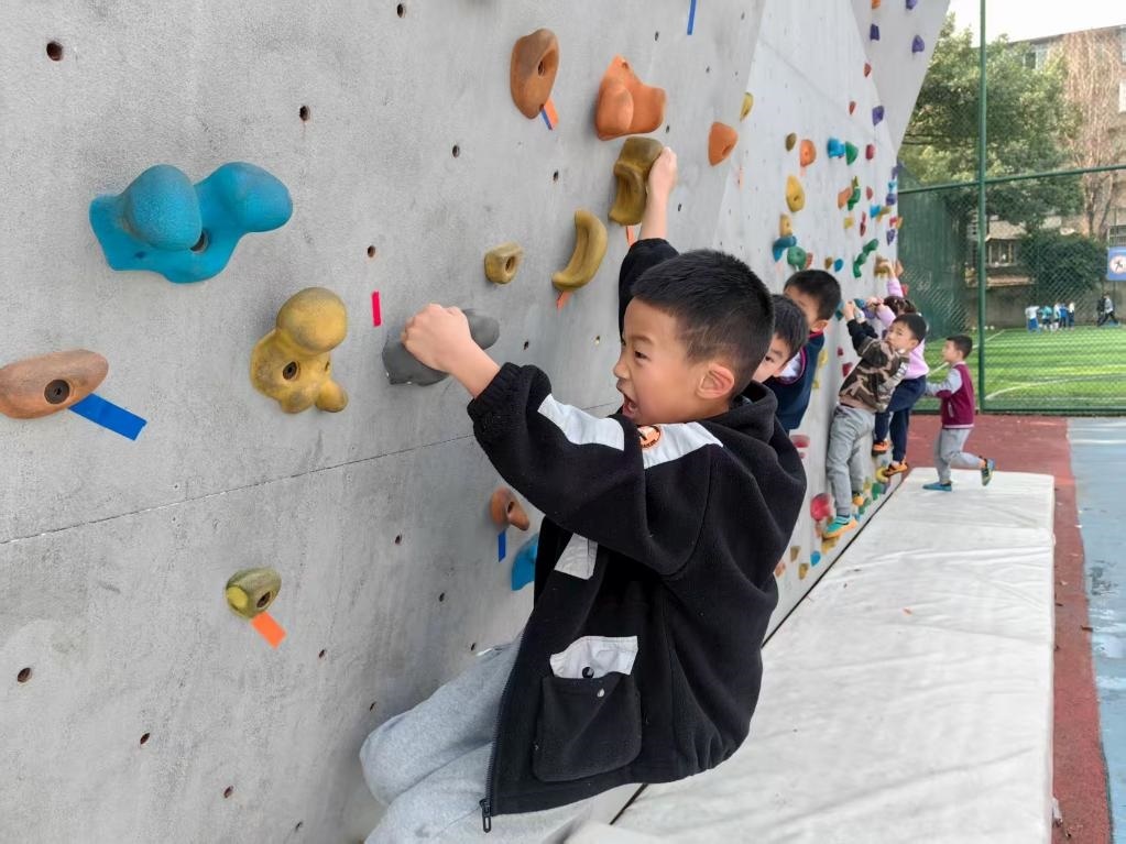 在成華區(qū)嘉祥外國(guó)語(yǔ)學(xué)校的戶外攀巖場(chǎng)