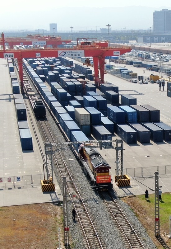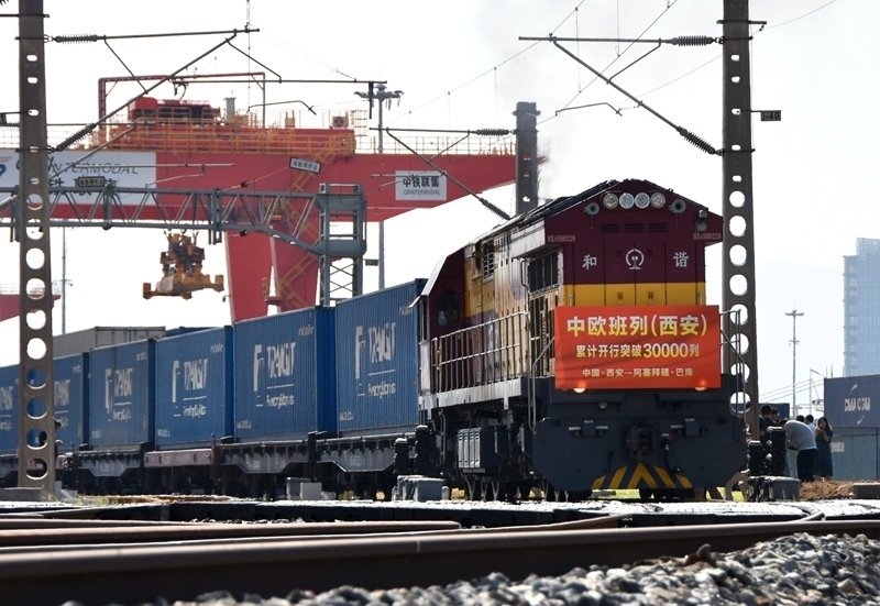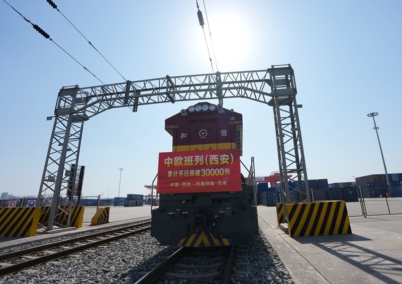 當(dāng)日上午,滿載著55個(gè)集裝箱光伏組件的X9043次中歐班列從西安國際港站駛出,開往阿塞拜疆巴庫,標(biāo)志著中歐班列(西安)自2013年開行首列以來累計(jì)開行突破30000列,開行總量超過全國中歐班列累計(jì)開行總量的四分之一。西安國際港站也成為了全國首個(gè)中歐班列開行量突破30000列的車站,開行量、貨運(yùn)量、重箱率等核心指標(biāo)位居全國第一。