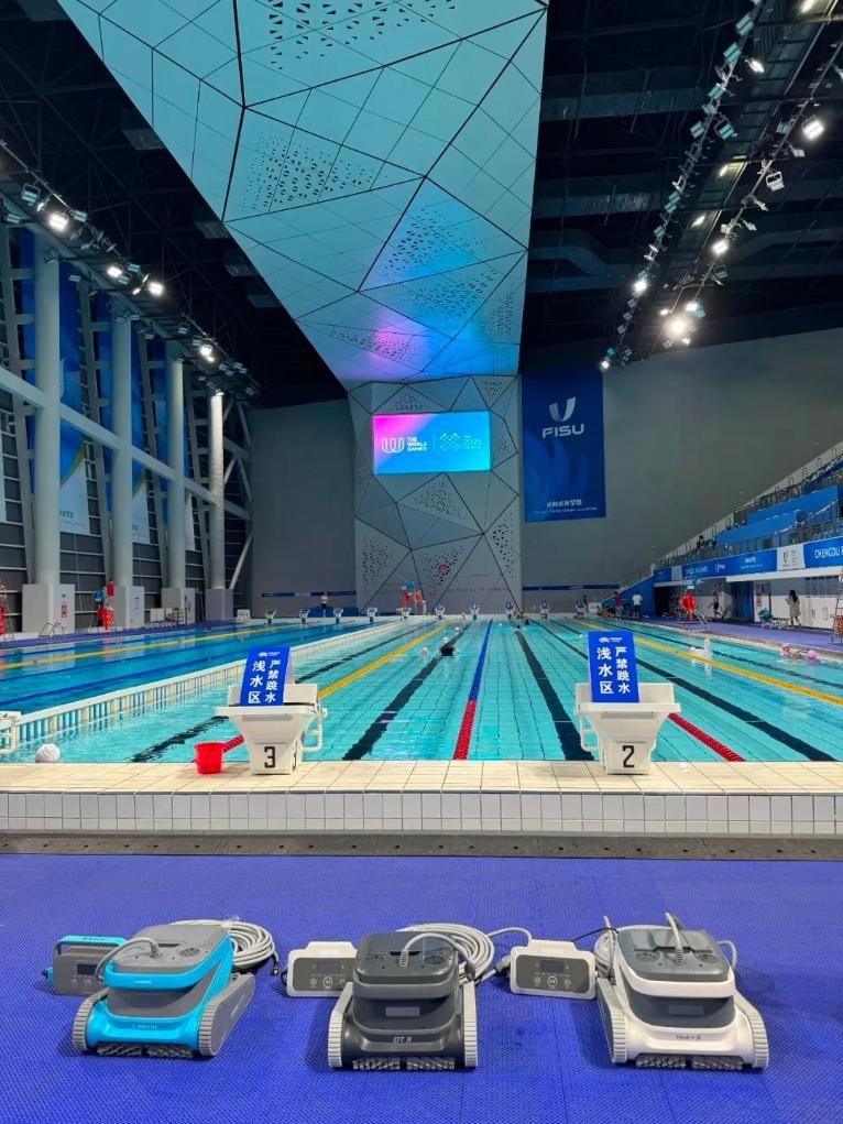 13日,世運(yùn)會(huì)皮艇球項(xiàng)目在簡陽文體中心游泳館開賽,與運(yùn)動(dòng)員們一同出現(xiàn)在泳池里的還有幾位特殊的“清潔工”。據(jù)場(chǎng)館工作人員介紹,賽事期間場(chǎng)館投入了泳池清潔機(jī)器人設(shè)備,完成對(duì)泳池的日常維護(hù)及清潔任務(wù)。