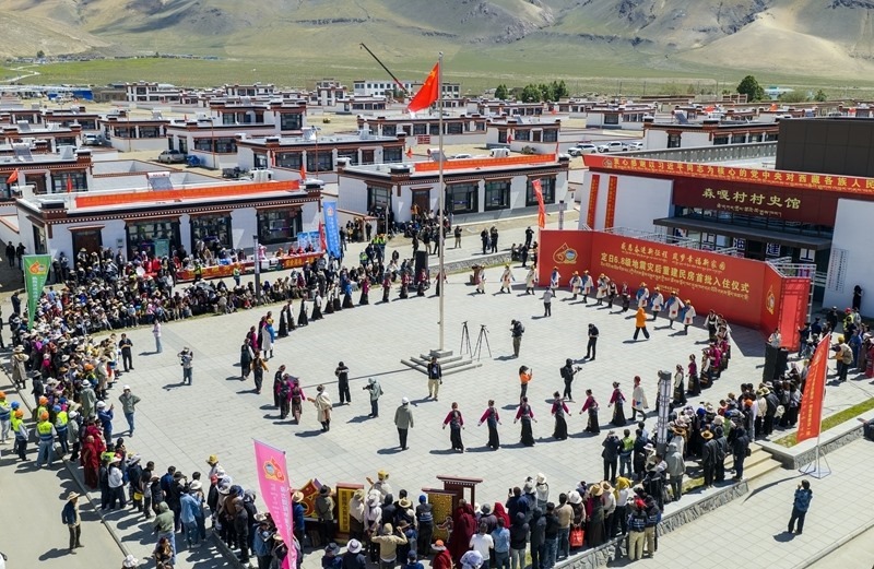 8月15日在西藏定日縣森嘎村拍攝的“定日6.8級地震災后恢復重建民房首批入住儀式”(無人機照片)。