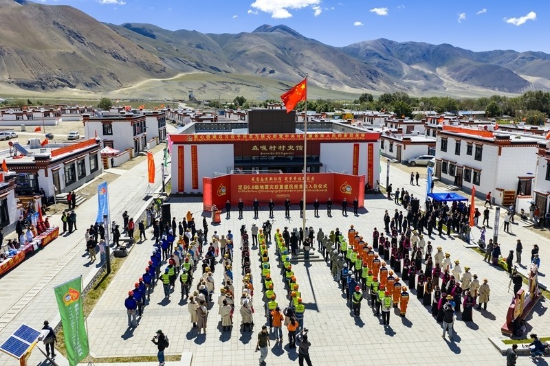 8月15日,西藏日喀則市定日縣森嘎村舉行“定日6.8級地震災后恢復重建民房首批入住儀式”,伴隨著哈達與祝福,包括定日、拉孜、薩迦等縣首批2578戶12139名受災群眾正式搬入安全舒適的新居。