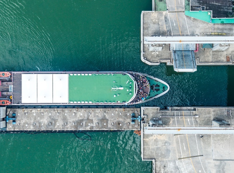 8月16日,在湖北省宜昌市,游輪長江三峽5號駛向三峽升船機(無人機照片)。